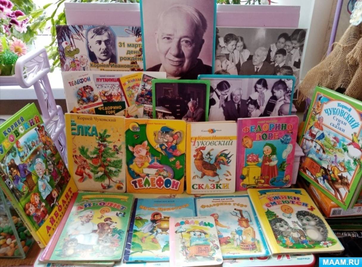 Используйте большие и яркие фотографии Чуковского и его героев, чтобы привлечь внимание детей и создать атмосферу волшебства.