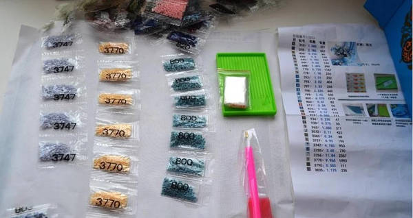 Расположите алмазики на рабочей поверхности по номерам: это упростит процесс вышивки и поможет избежать ошибок.