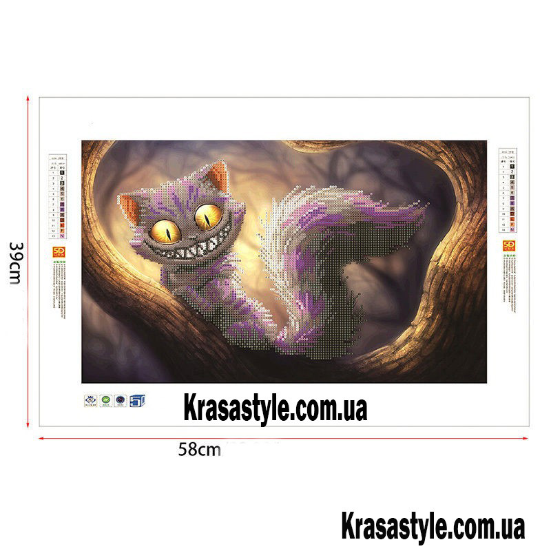 Приступайте к вышивке с помощью счетного крестика, чтобы точно передать все детали изображения Чеширского кота.