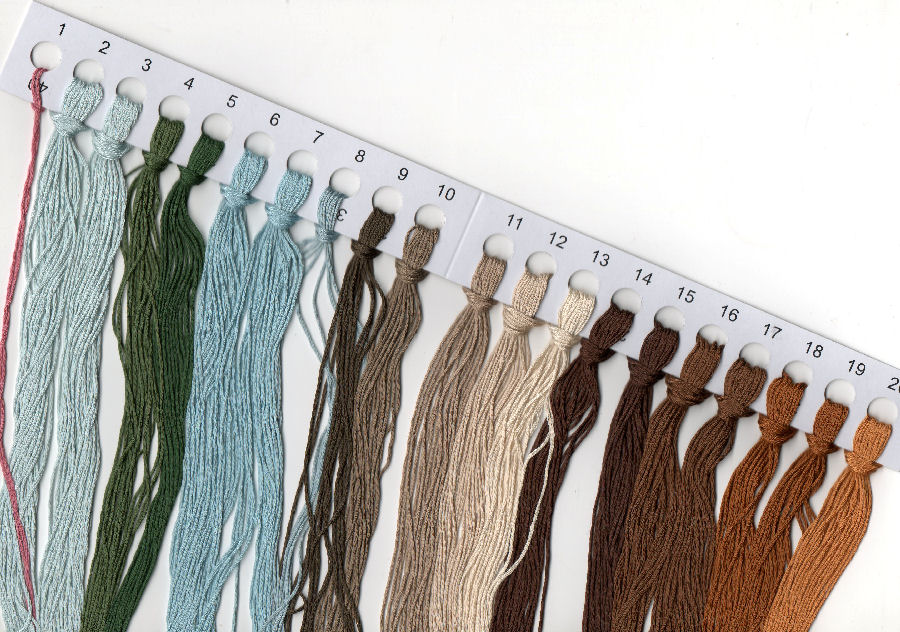 При вышивке деревьев и листвы используйте разные оттенки зеленого, чтобы создать объем и глубину изображения.