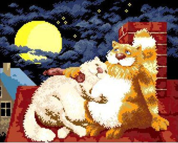 Вышивка крестом: коты на крыше\