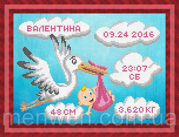 Вышивка крестиком: детская метрика для девочки