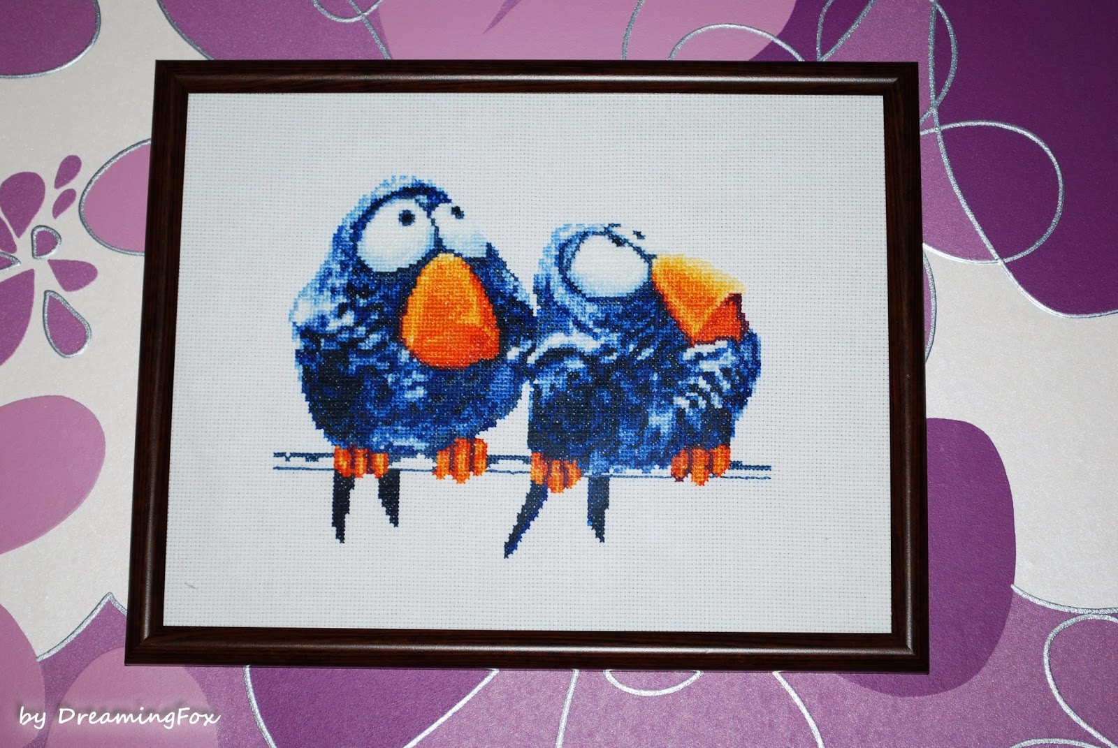 Следите за светом при вышивке, чтобы не перепутать оттенки ниток и добиться точности воспроизведения цветов птиц.
