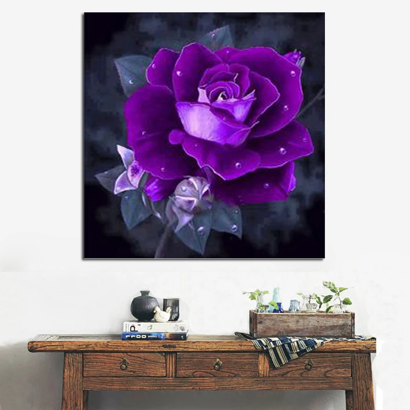 Создайте панно из алмазной вышивки с розами и повесьте его на стену возле стола для максимальной эффектности.