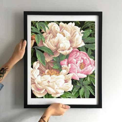 Вышивка Акварельные пионы по схеме Ксении Дмитриевой