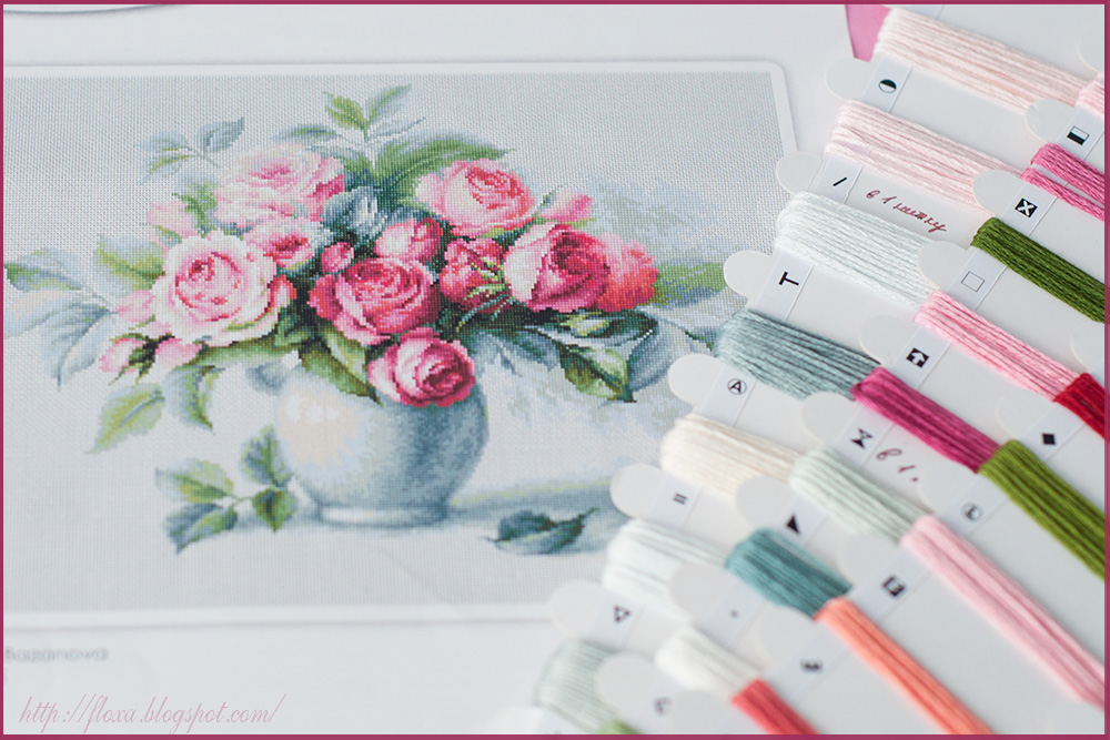 Luca-S/Букет чайных роз/вышивка крестом/обзор и начало/вышивка на равномерке