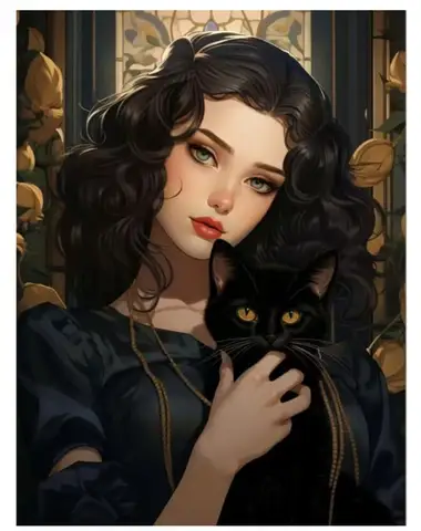 Выберите подходящую вышивальную схему с изображением девушки с черной кошкой.
