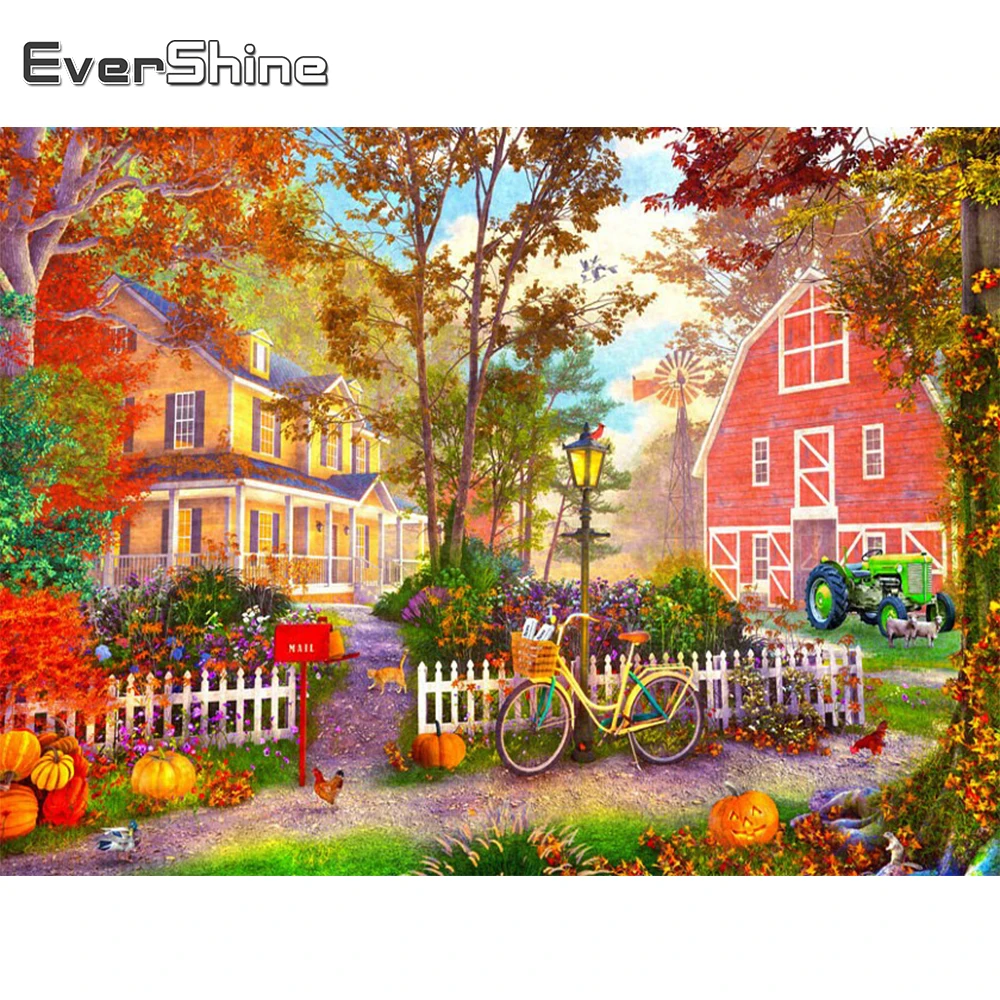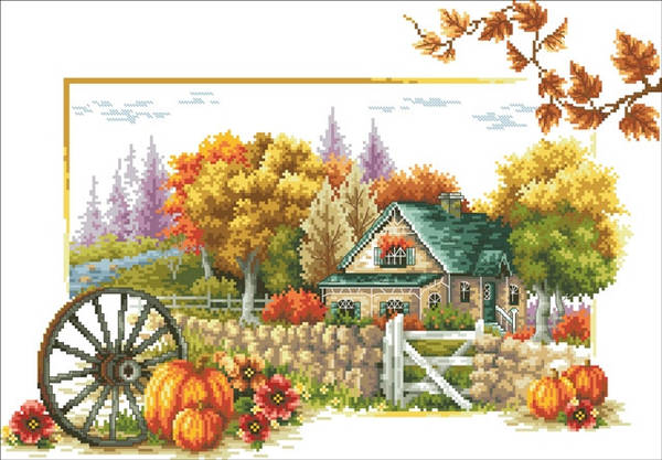 Популярная вышивка домика в повседневных цветах осени
