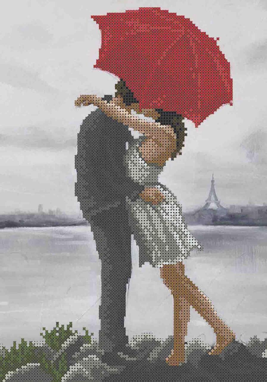 обзор готовой картины пара под зонтом