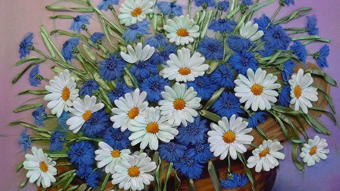 Идеи и советы по вышивке гладью васильков и ромашек