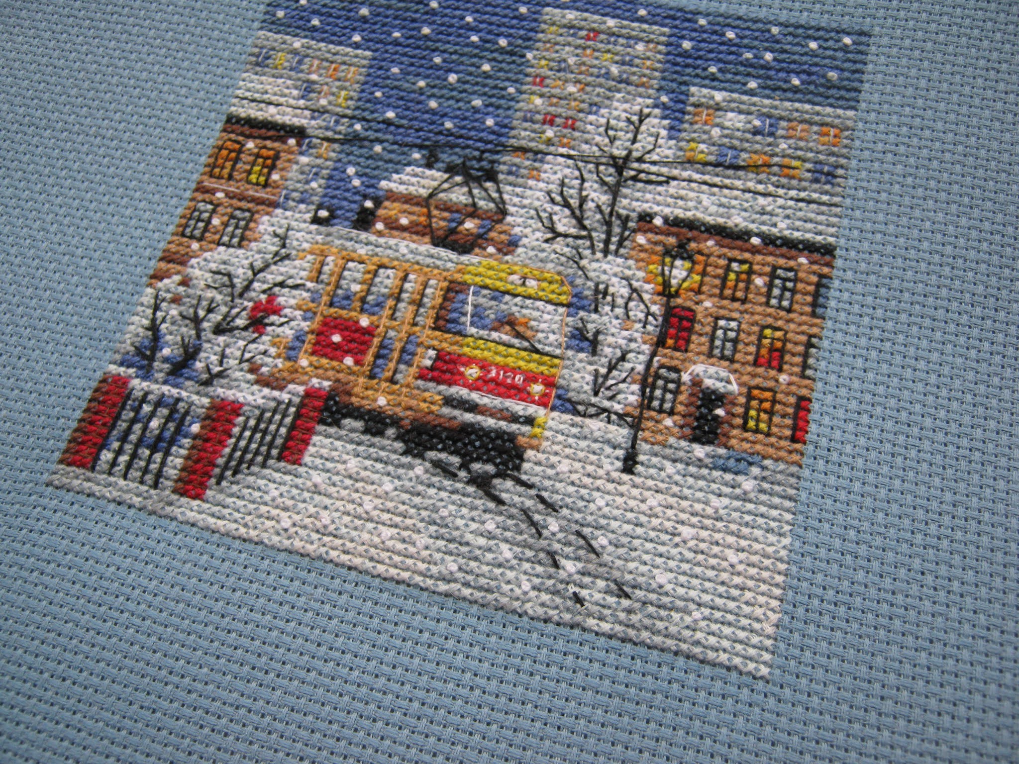 При выборе цветов для вышивки трамвая примите во внимание освещение, чтобы добиться наилучшего эффекта.
