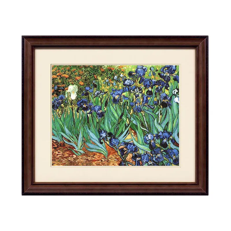 Мои вышивки картин Ван Гога - Подсолнухи и Ирисы и квадратики, выполненные в разной технике