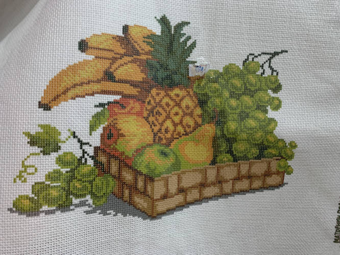 Китайская вышивка на канве с нанесённым рисунком «Корзина с фруктами». Отчёт N3. Вышивка крестиком