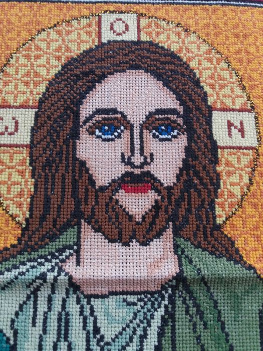 Используйте специальный крестовый стежок для вышивки контуров и очертаний лица Иисуса Христа.