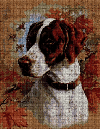 Применяйте различные техники вышивки крестиком, чтобы придать изображению собаки объем и текстуру.