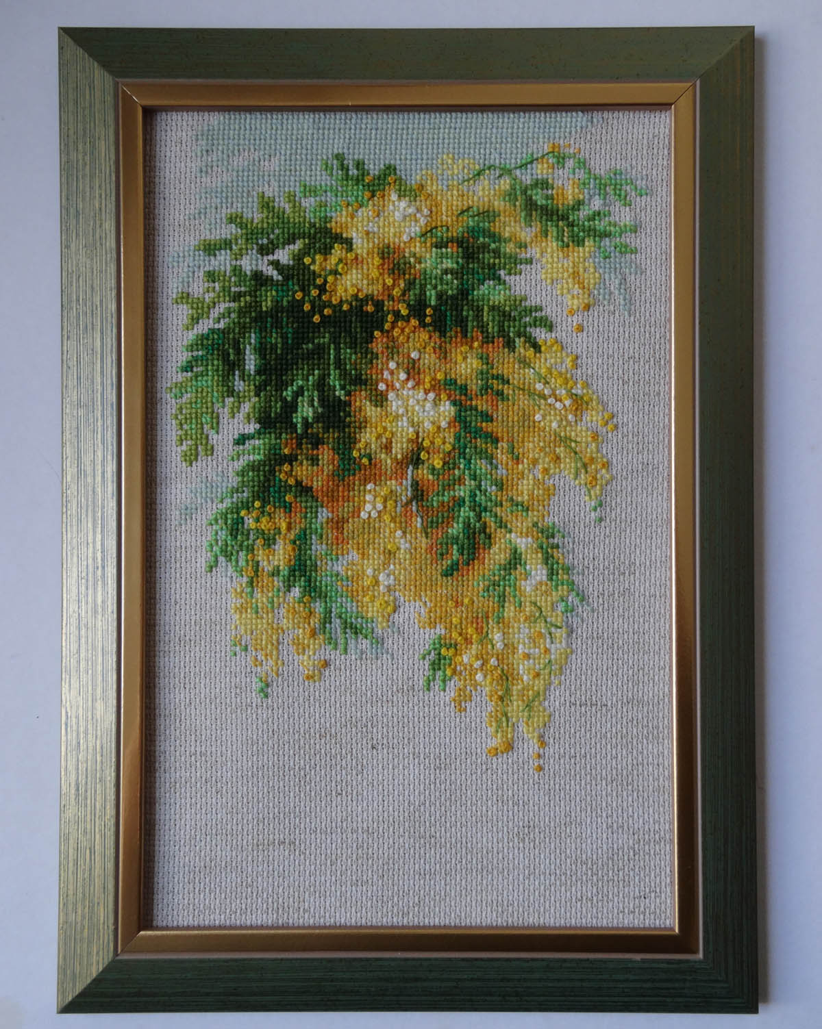 Riolis Mimosa cross stitch embrodery. Вышивка крестом готовая работа Риолис Мимоза