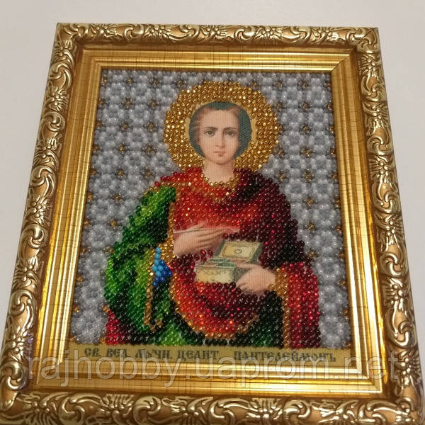 Вышивка икон. Пантелеймон целитель вышитый бисером и камнями