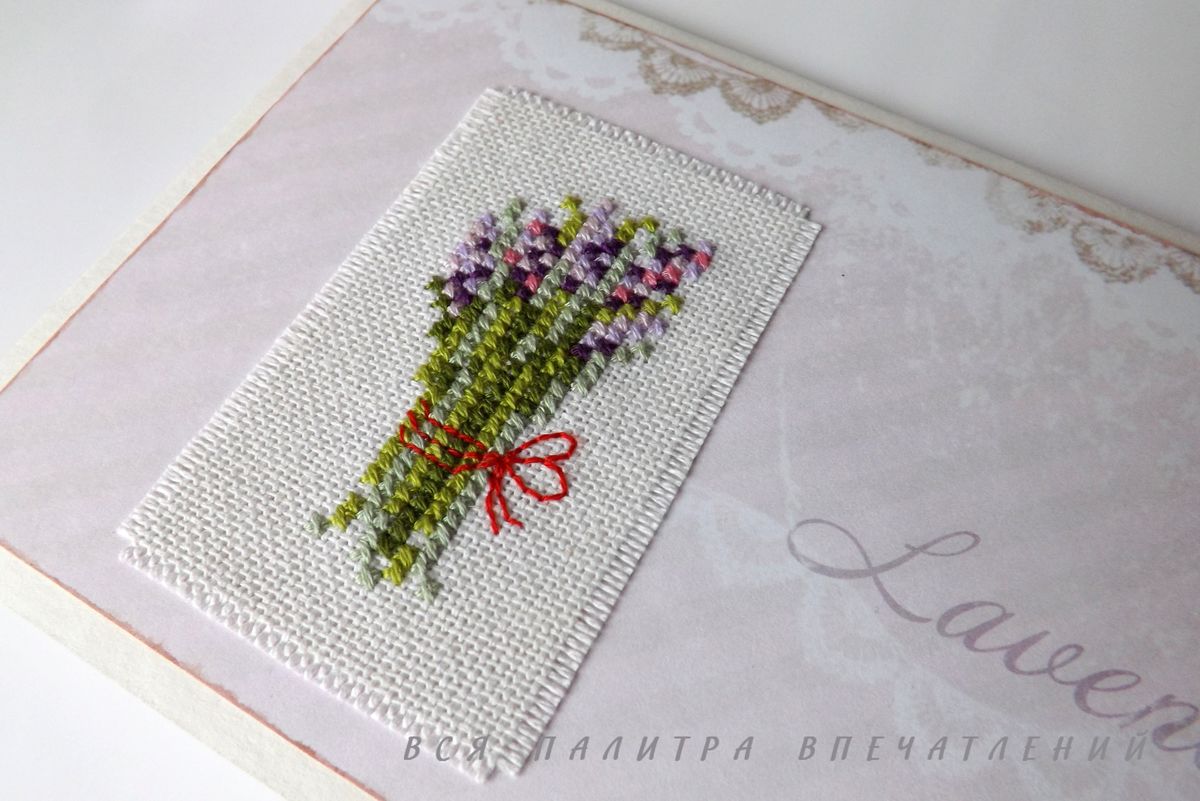 При вышивке лаванды используйте разные оттенки фиолетового и зеленого, чтобы создать эффект реалистичности.