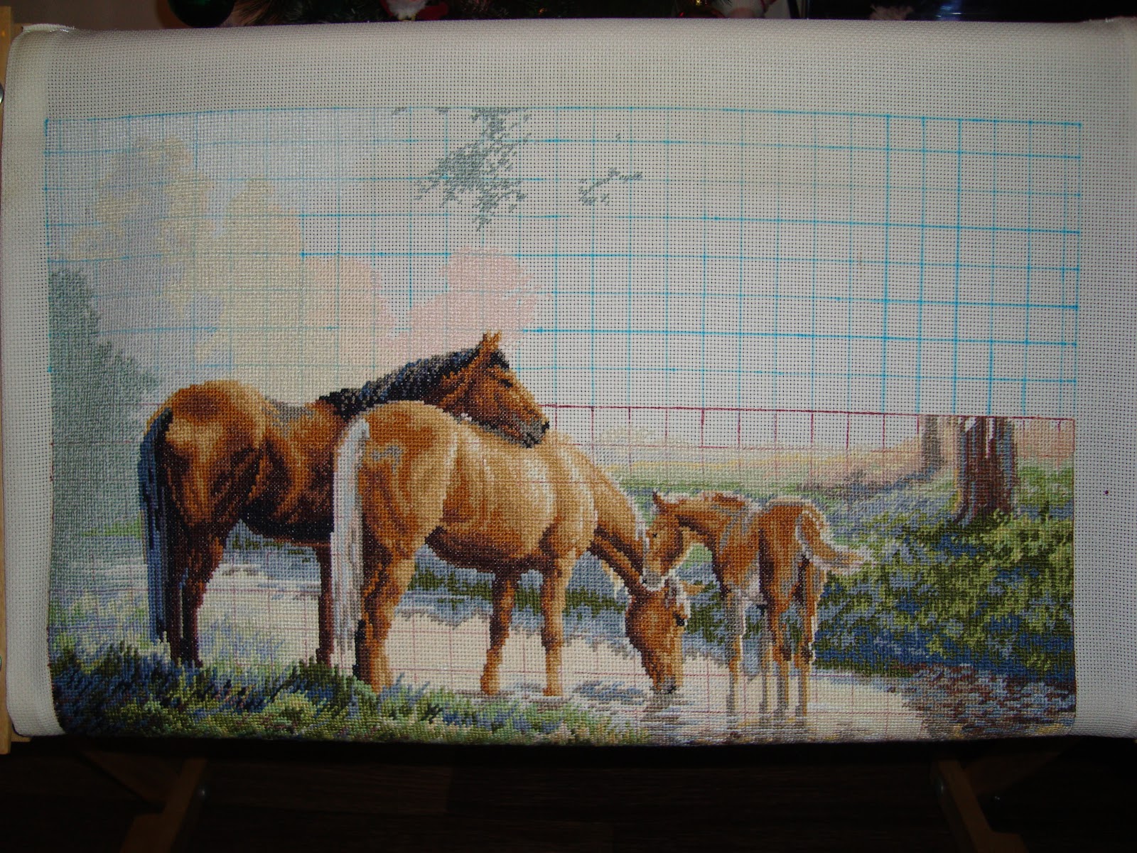 Вышивка крестом. Мои продвижения по набору Dimensions Лошади у ручья.