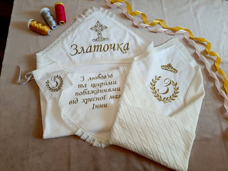 Крыжма - полотенце для крещения, махровая, с вышивкой золотой нитью.