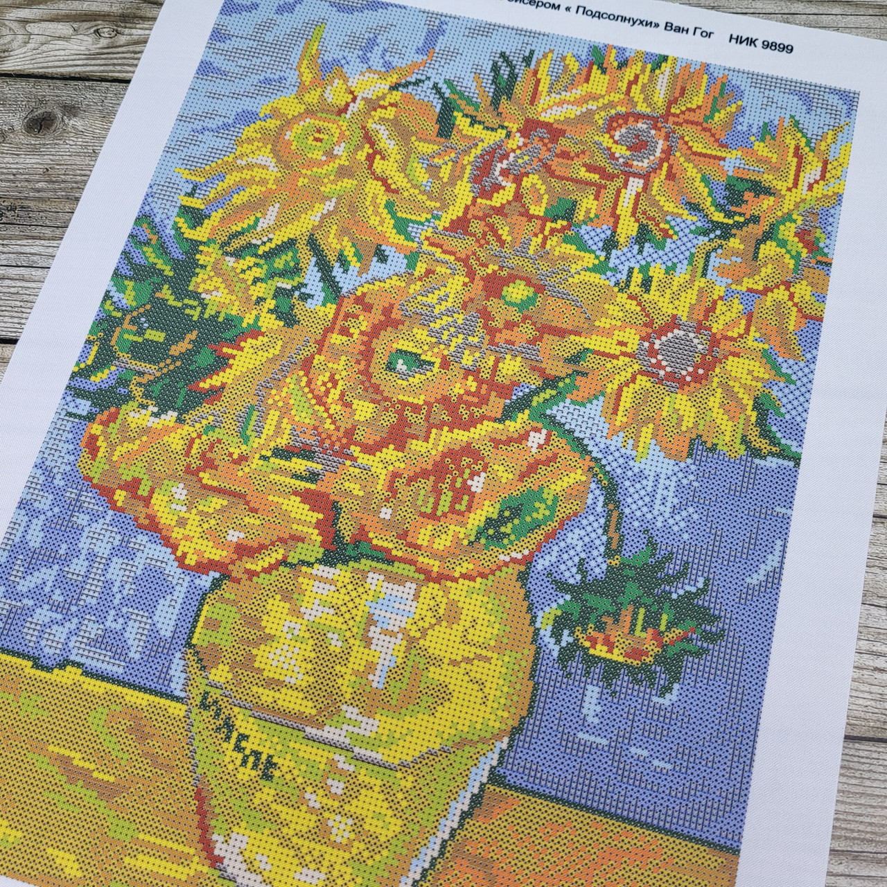 Мои вышивки картин Ван Гога - Подсолнухи и Ирисы и квадратики, выполненные в разной технике