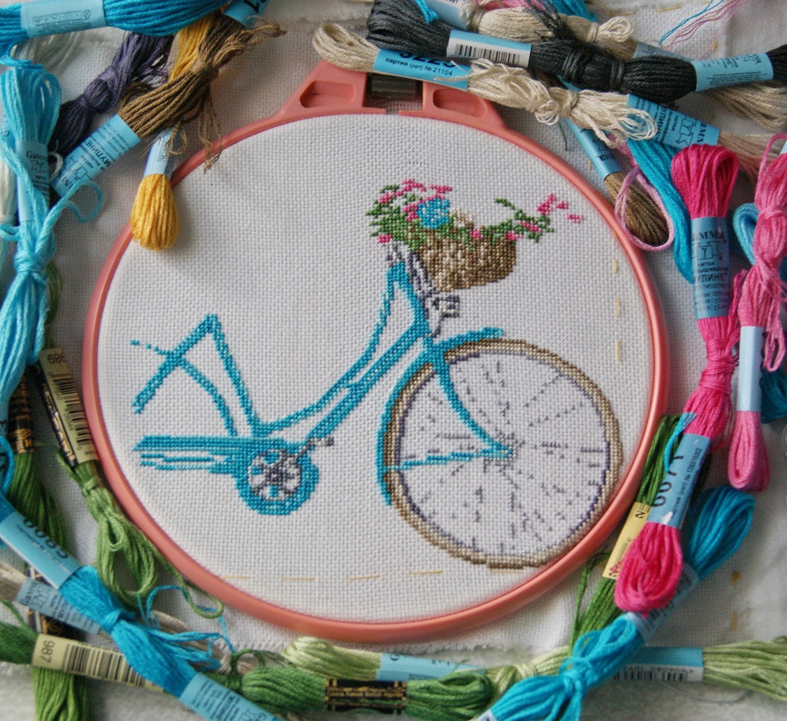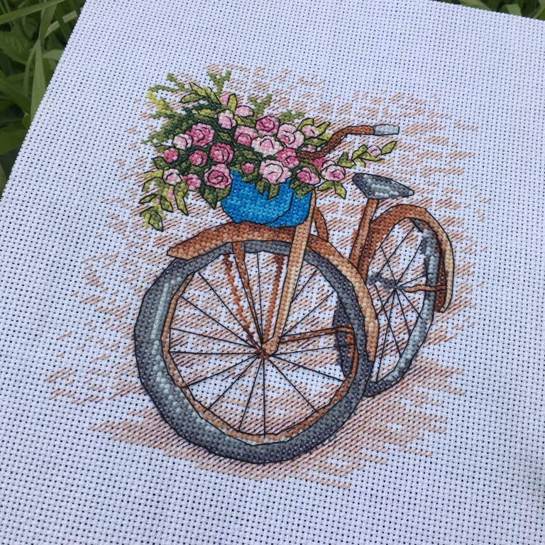 Велосипед и цветы/Вышивка крестиком