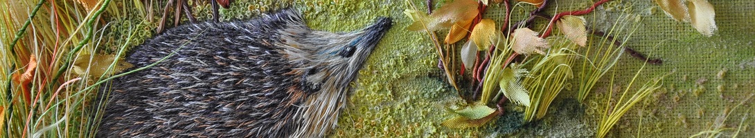 Для получения объемных эффектов в вышивке можно использовать технику волоконного контура, пришивая нитки к основе лентами.