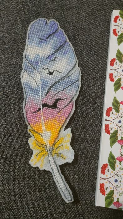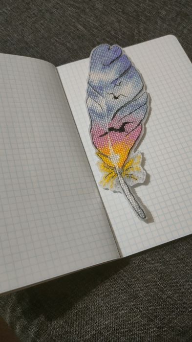 Создание красивой закладки с вышивкой крестом в форме пера