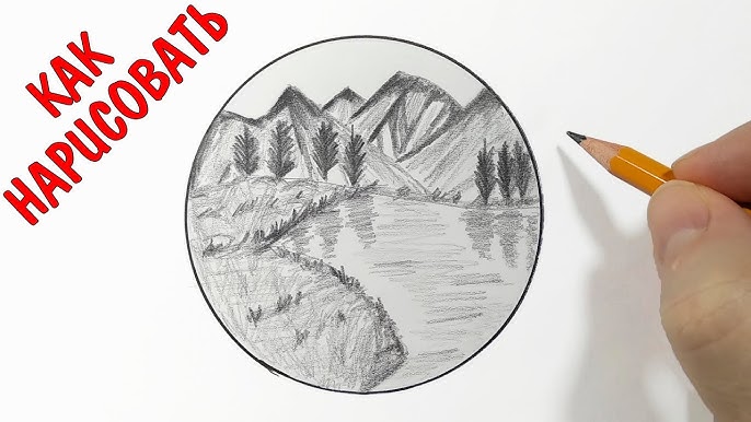 Как нарисовать пейзаж простым карандашом - Рисунок для начинающих поэтапно