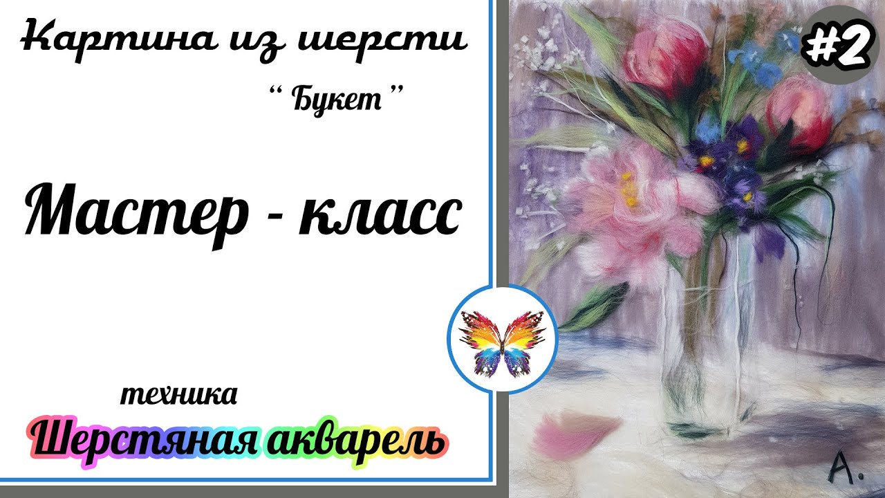 Как рисовать шерстью 🔷 Картина из шерсти 🔷Мастер класс🔷 Букет цветов 🔷 Часть #1