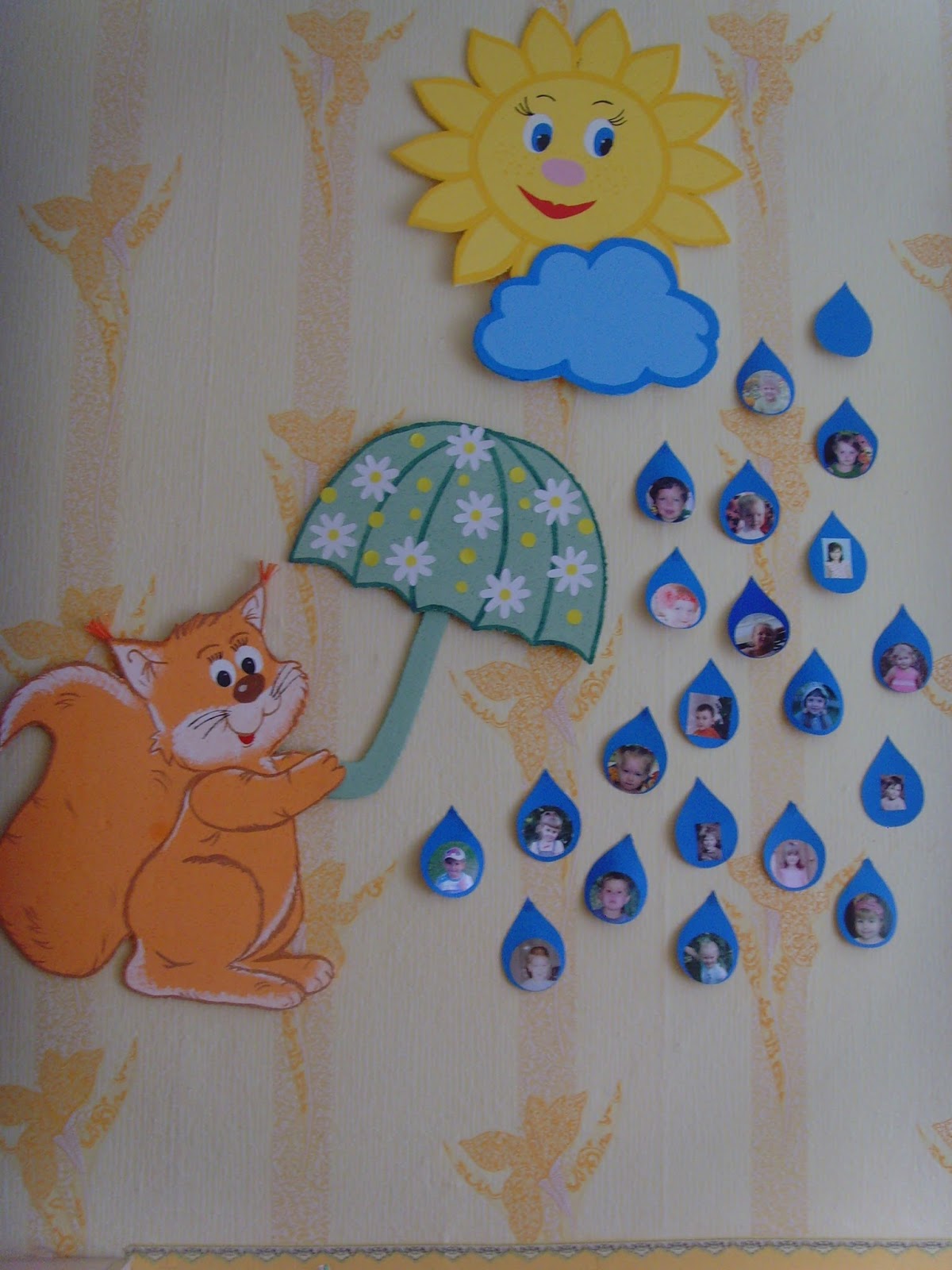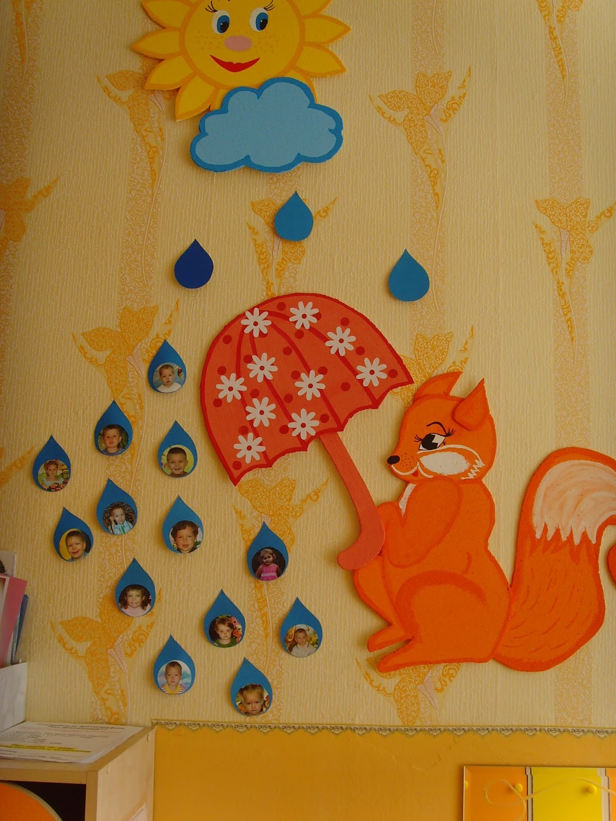 Используйте специальные крепления и красивые наклейки для организации картинок и карандашей на стенах уголка изо.