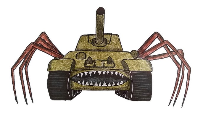 Добавьте детали, такие как колеса, окна и оружие, чтобы ваш рисунок был максимально реалистичным.