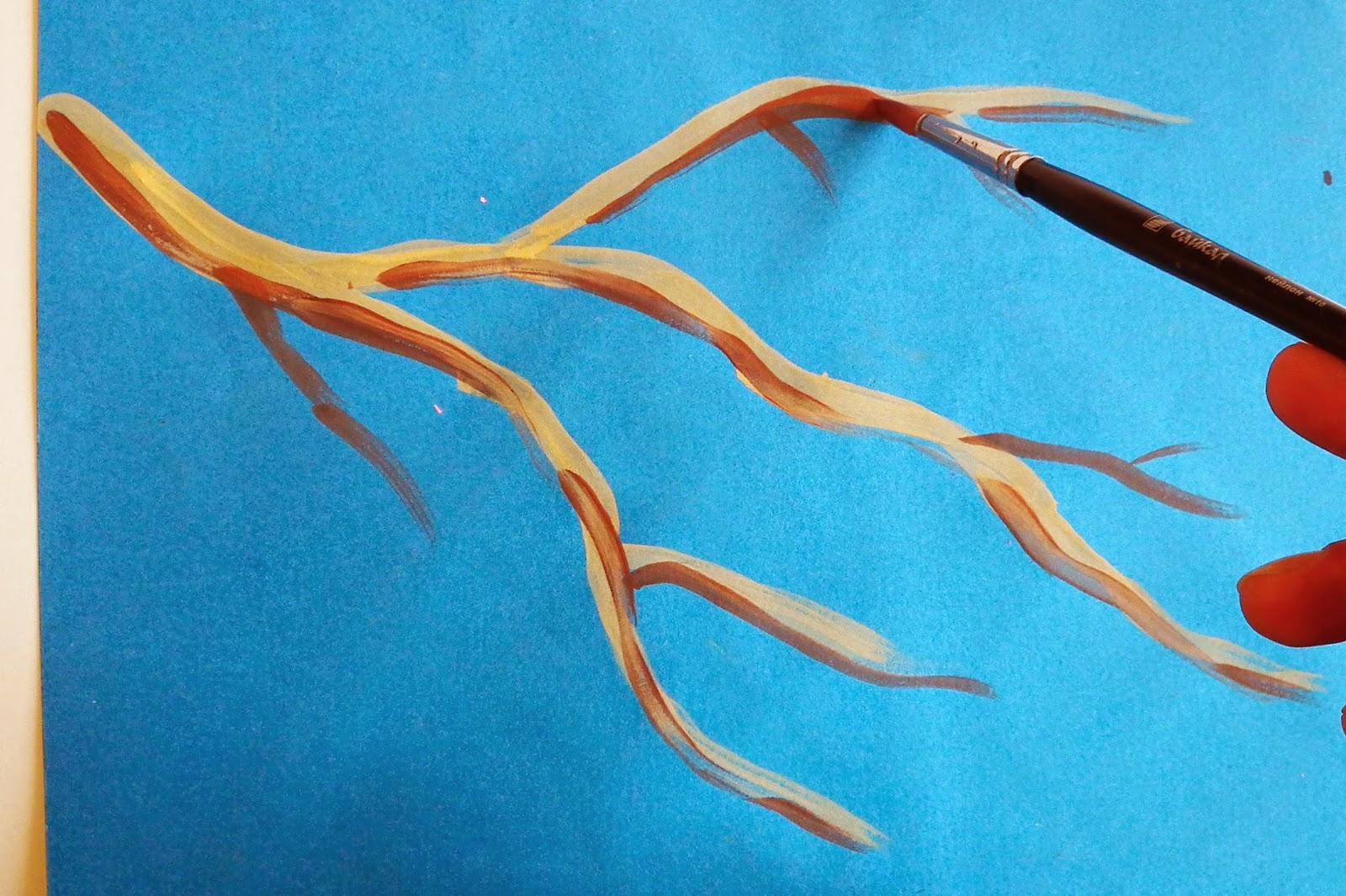 Обратите внимание на оттенки и переходы цветов, чтобы создать объемное изображение ветки.