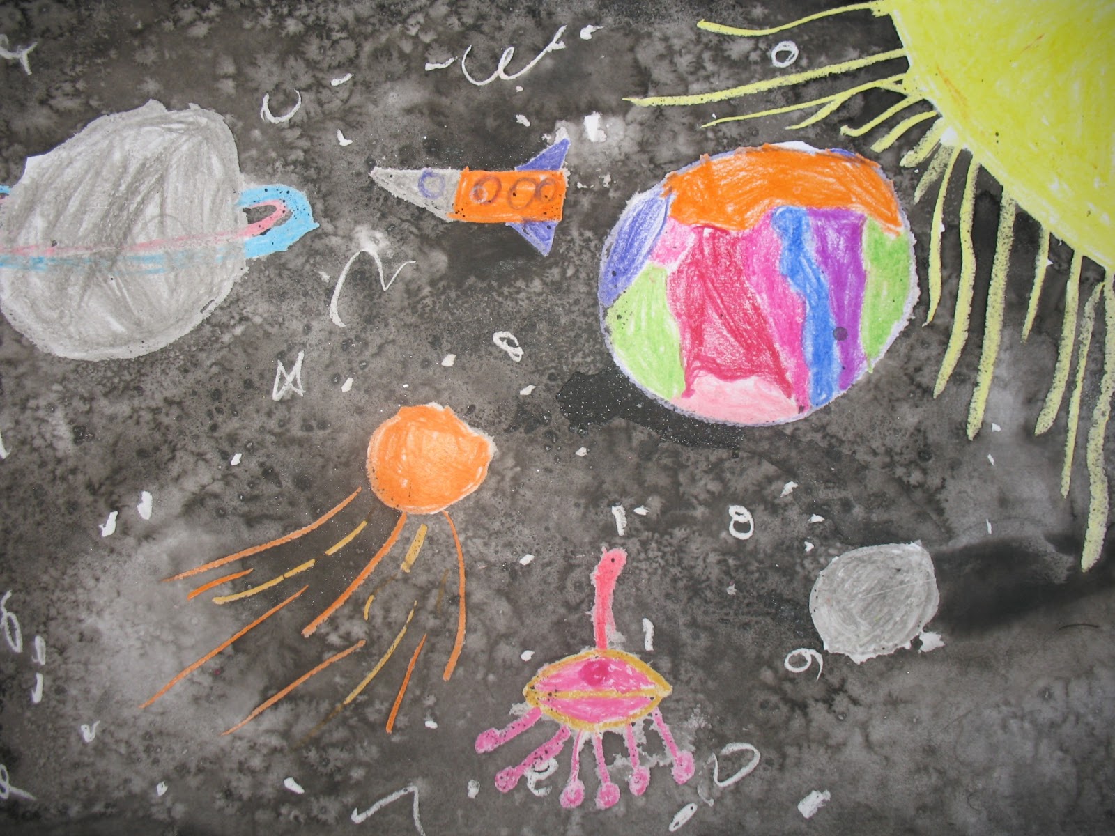 Позвольте детям использовать свою фантазию и творческие способности при рисовании космической тематики.