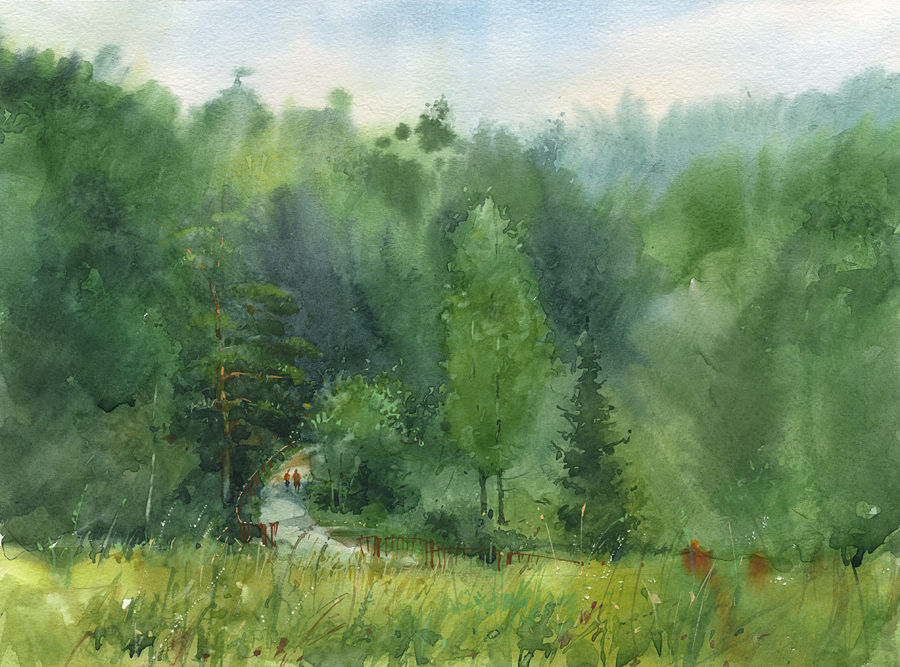 Уроки рисования. Как рисовать пейзаж акварелью. Поэтапное рисование. Акварель для начинающих. Пейзаж