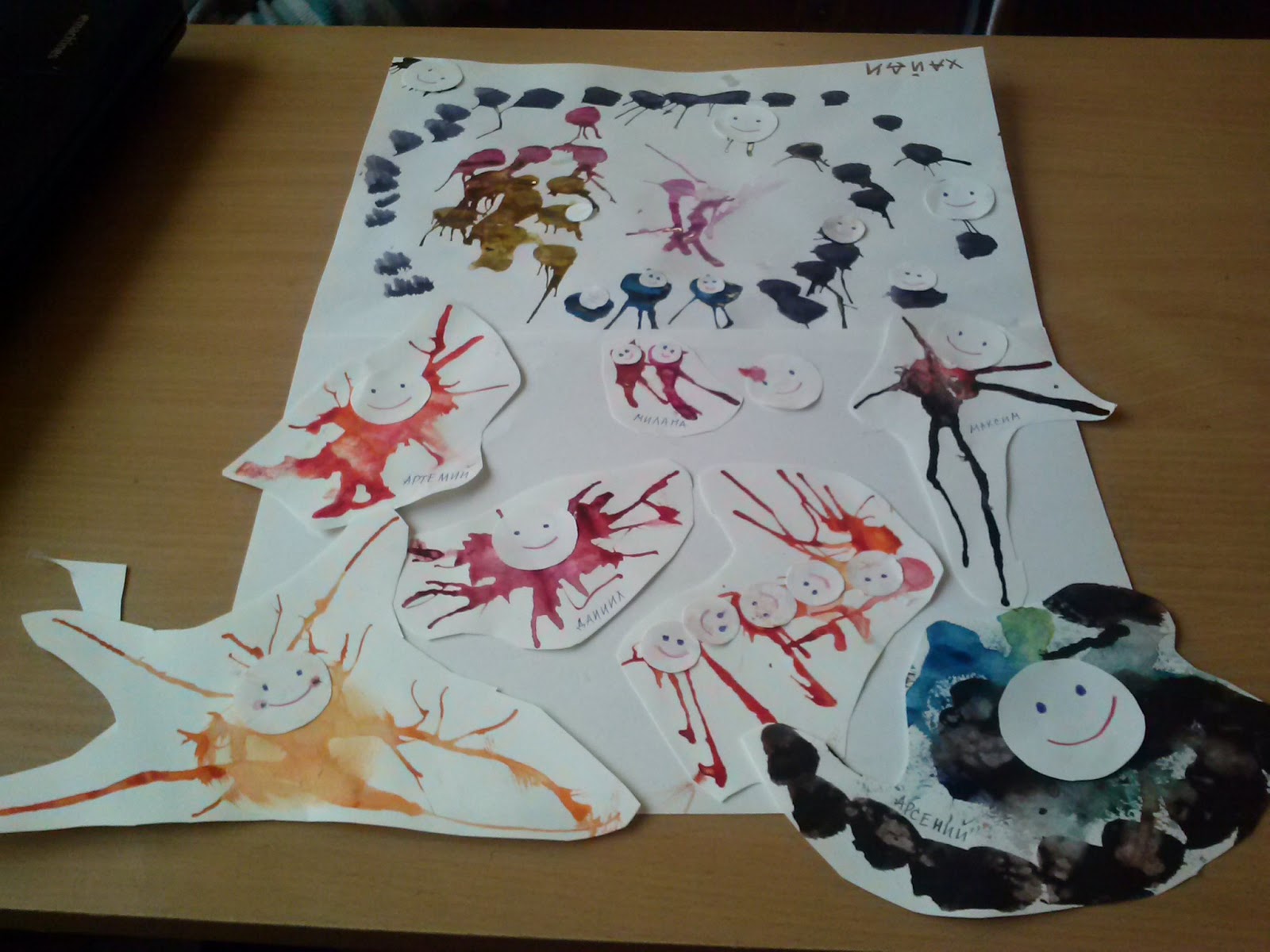 Попробуйте создавать рисунки из кляксы на разных фонах - черном, цветном или даже на акварельной бумаге.