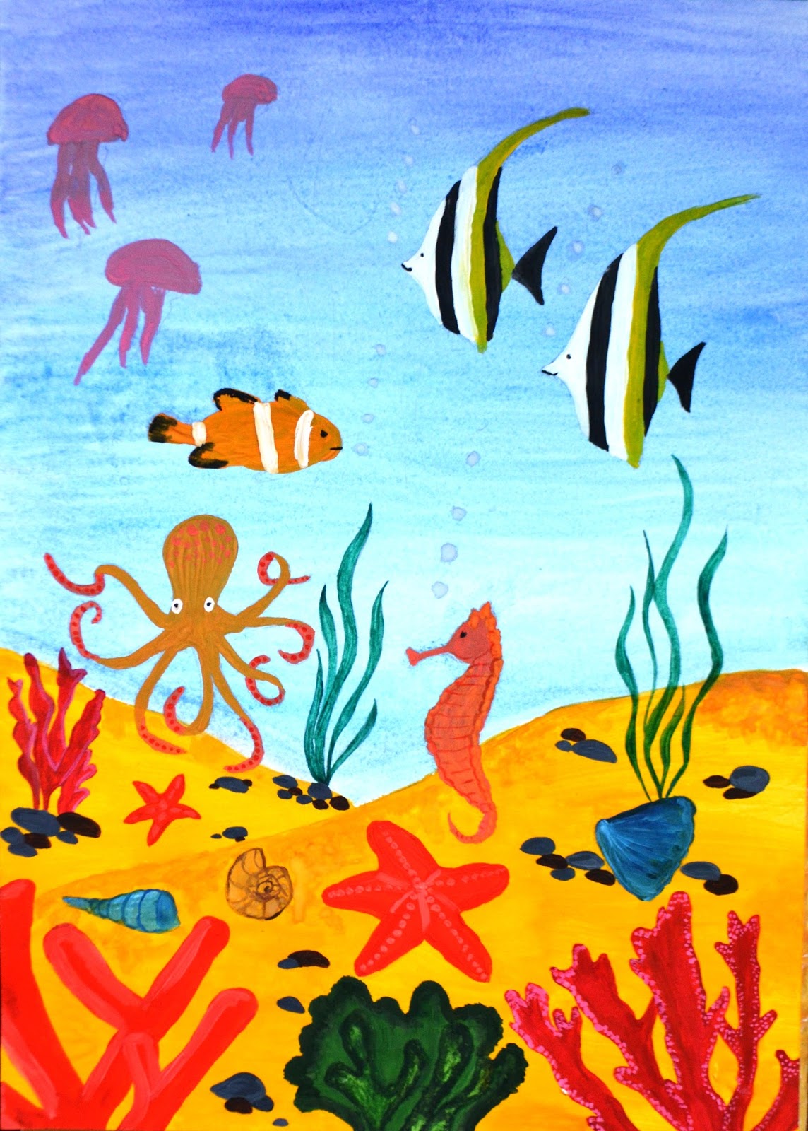 Рисуем морское дно и его обитателей. Урок рисования