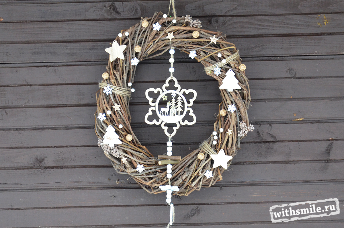 Для улучшения внешнего вида венка, добавьте ленту или бантик с рождественской атрибутикой.