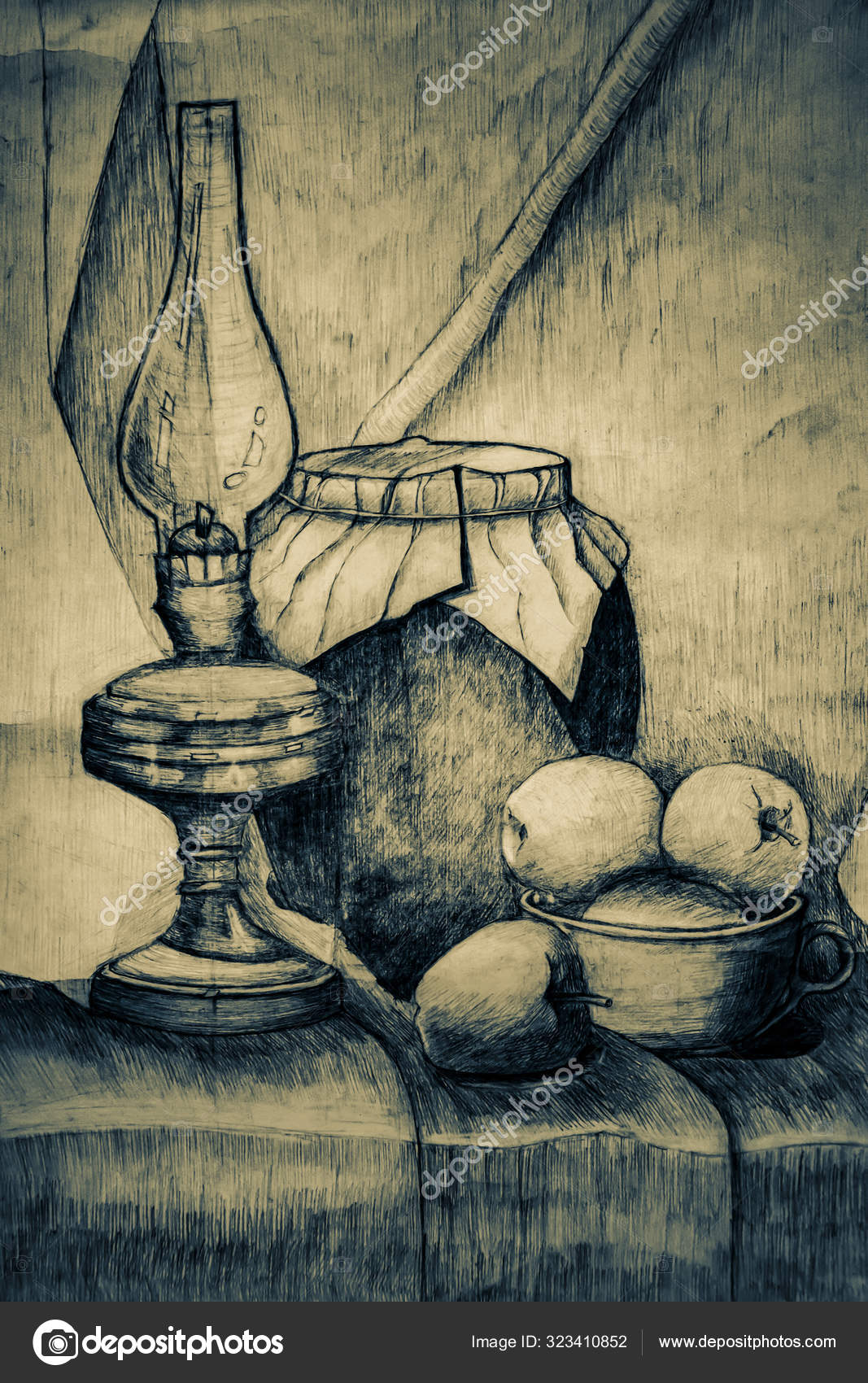 Разработайте композицию перед тем, как начать рисовать. Проанализируйте формы свечи и подсвечника, задайте себе вопросы о том, как они будут выглядеть вместе.