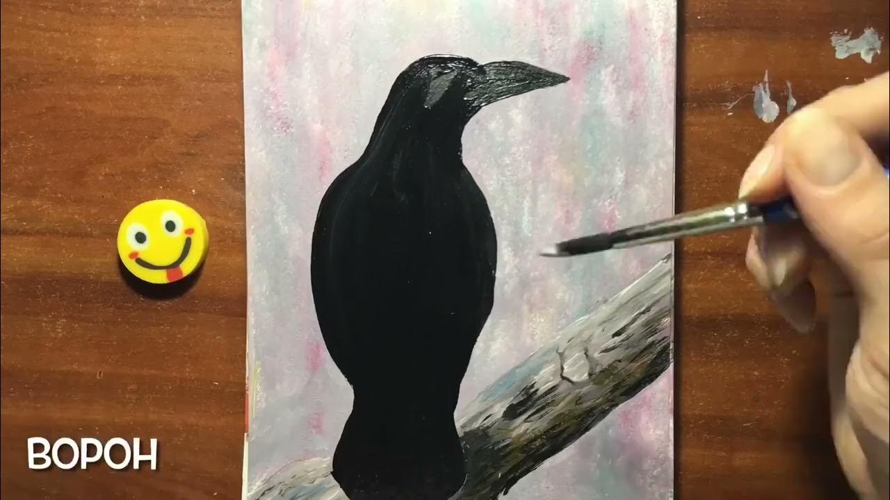 Идеи и подробные инструкции по рисованию вороны на ветке