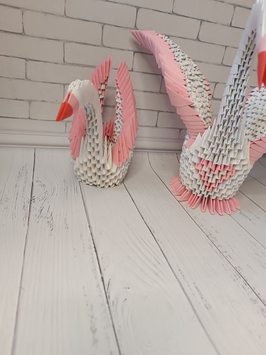 Поэкспериментируйте с размером бумаги для лебедя и корзинки, чтобы создать разные варианты и визуальные эффекты. Большие лебеди и маленькие корзинки или наоборот - это ваше творчество!