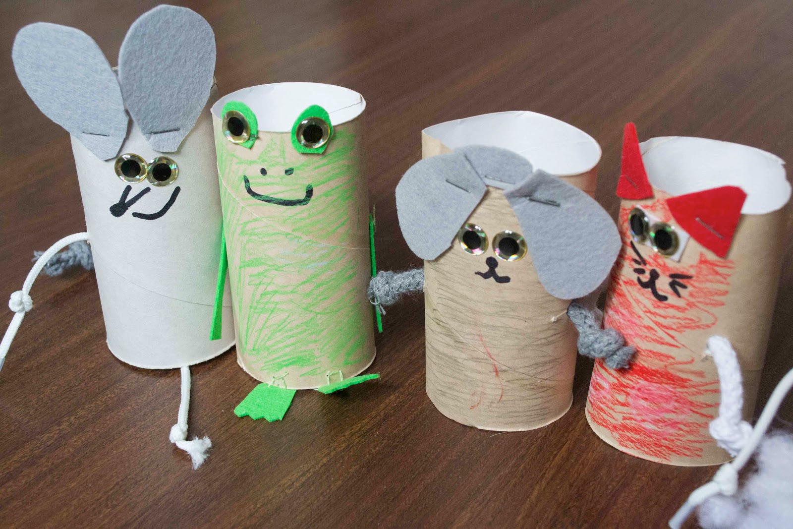 Добавьте медведю из втулок от туалетной бумаги маленькие детали, такие как ушки или пушистый хвостик.