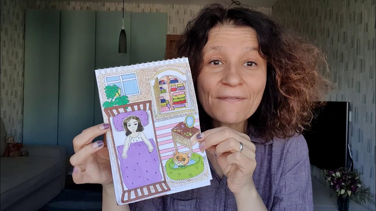 Рисуем бумажный домик с интерьером для милой кошки