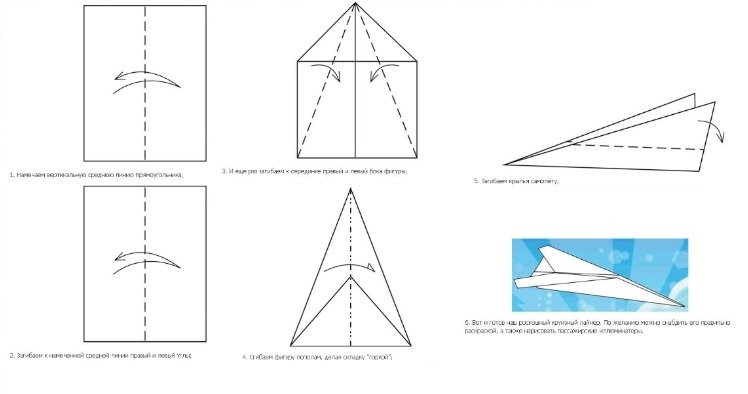 Фото и видео с самолетиком из бумаги, который летает очень долго: пошаговая схема сборки и полезные советы