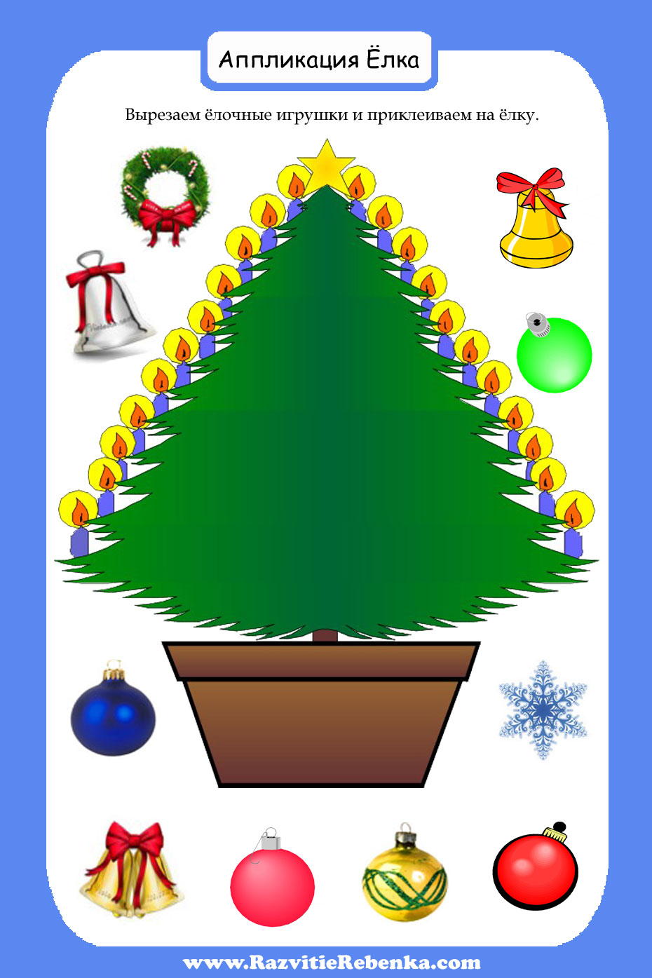 Выберите яркие и красочные игрушки для аппликации, чтобы ваша елочка выглядела ярко и празднично.