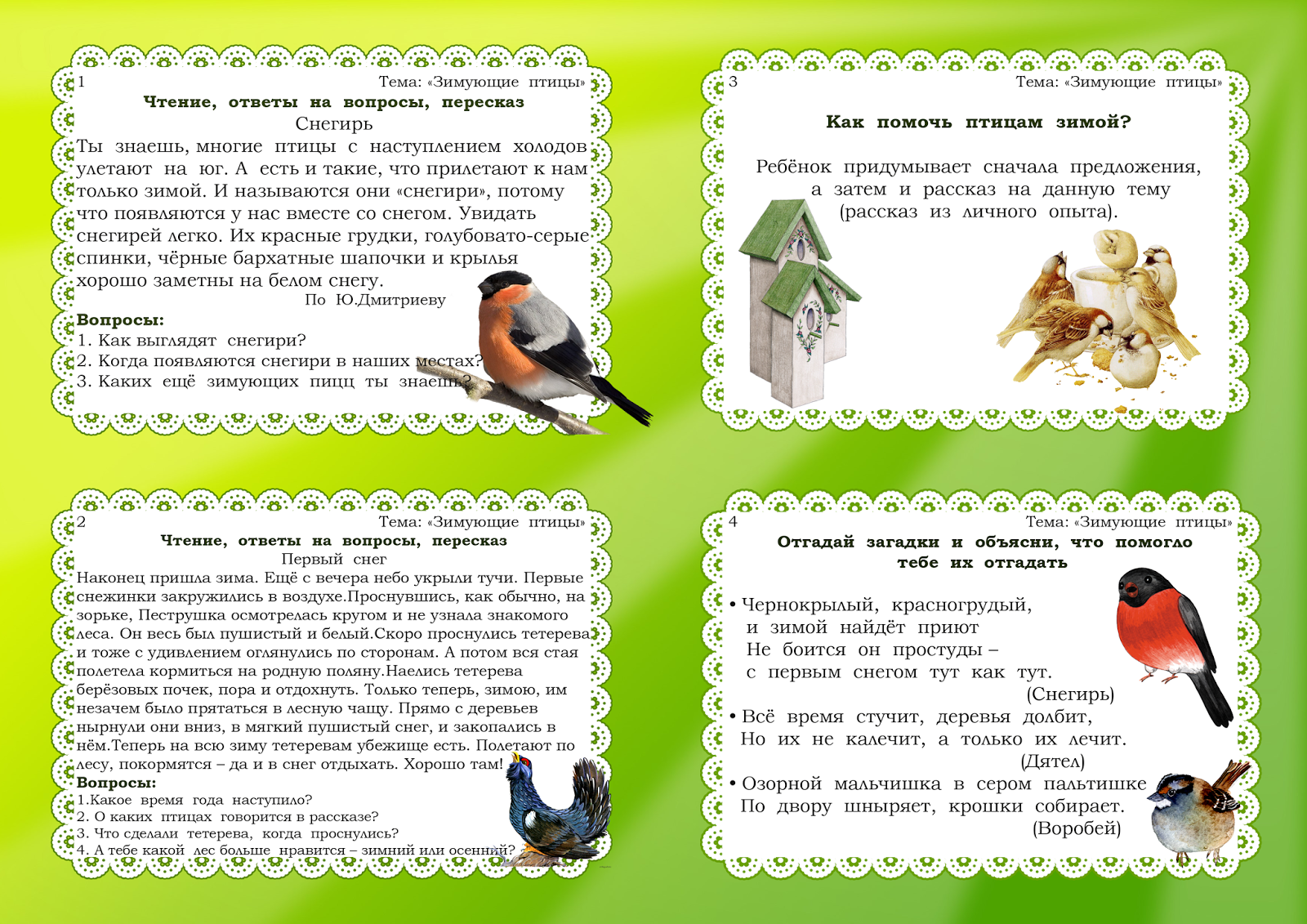 Используйте яркие раскадровки о зимующих птицах.