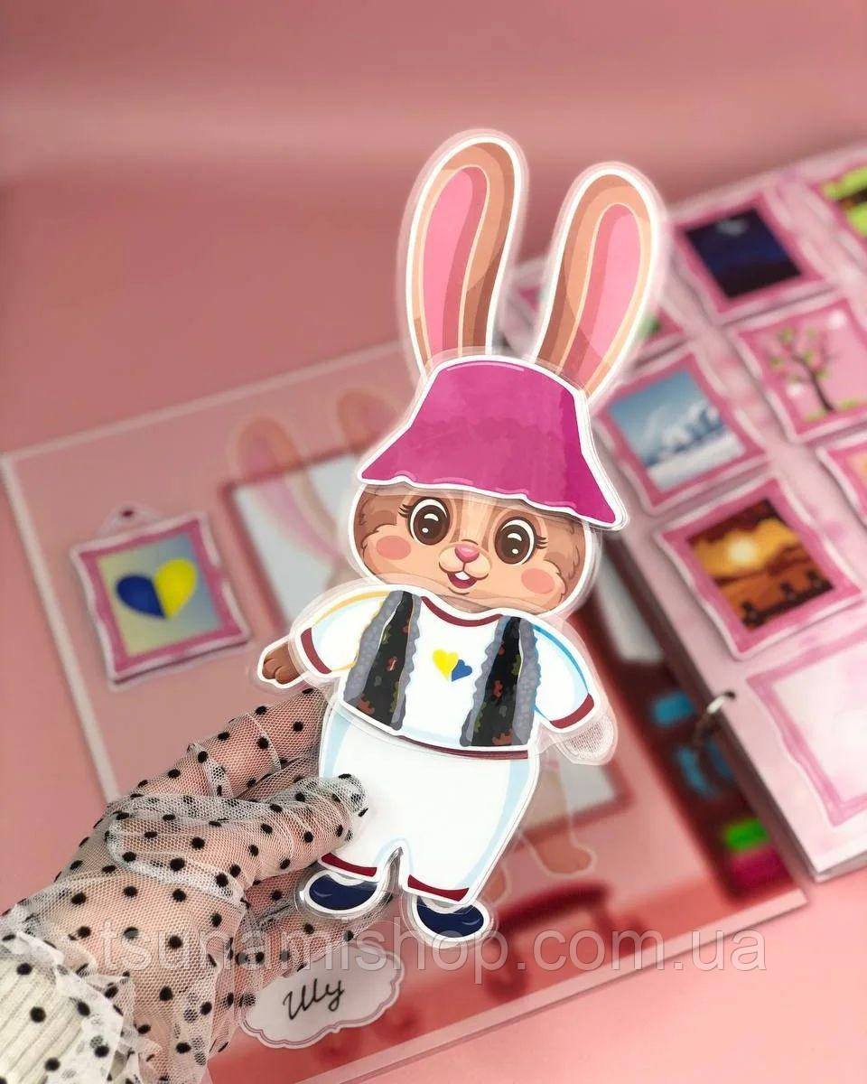 Используя пластмассовые глазки, прикрепите их к голове зайчика.